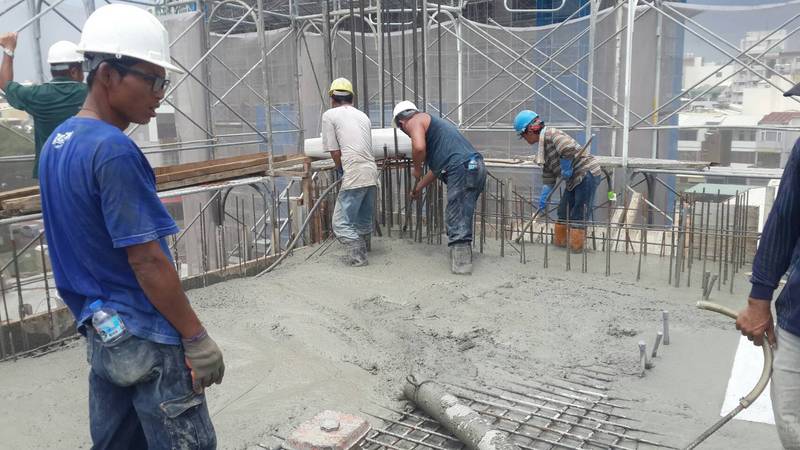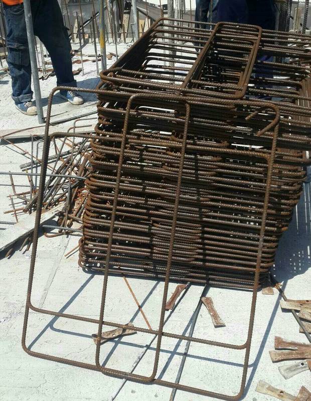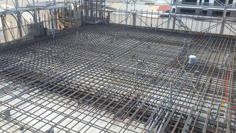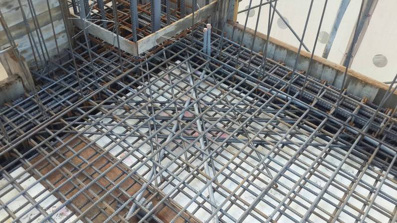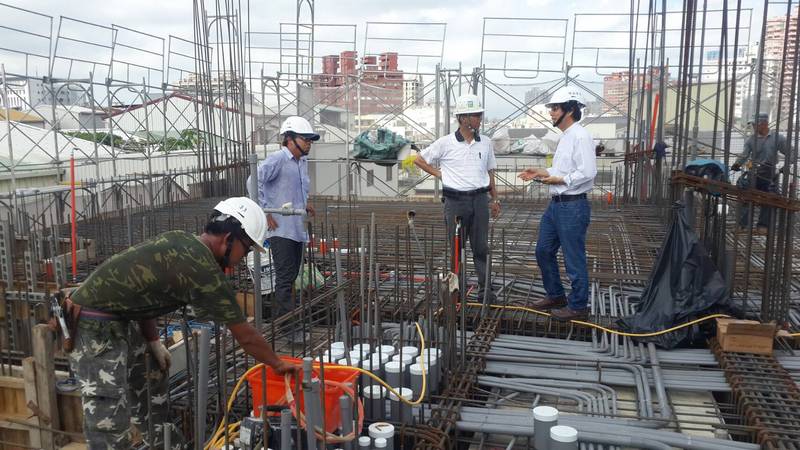 灌漿前,建築師與工務人員現場會勘.鋼筋實況