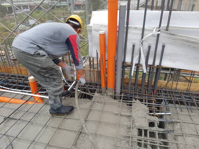 3F底版灌漿,搗築混凝土.振動棒使用減少蜂巢