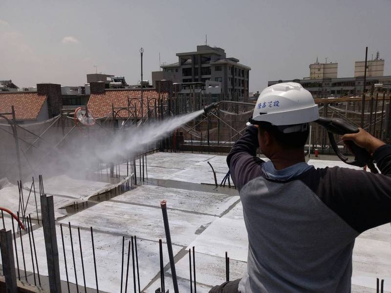 G區五樓公寓-五樓底版蓋白色PP版,噴水養護