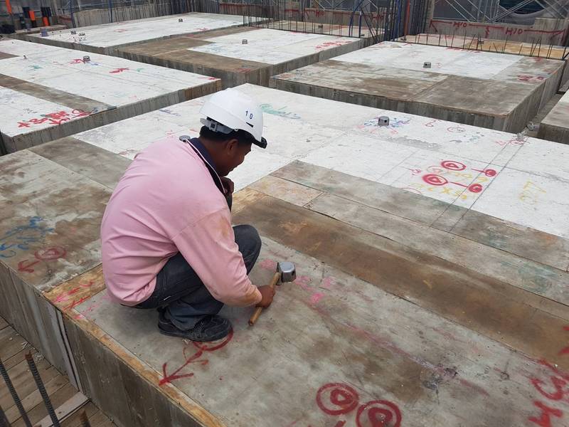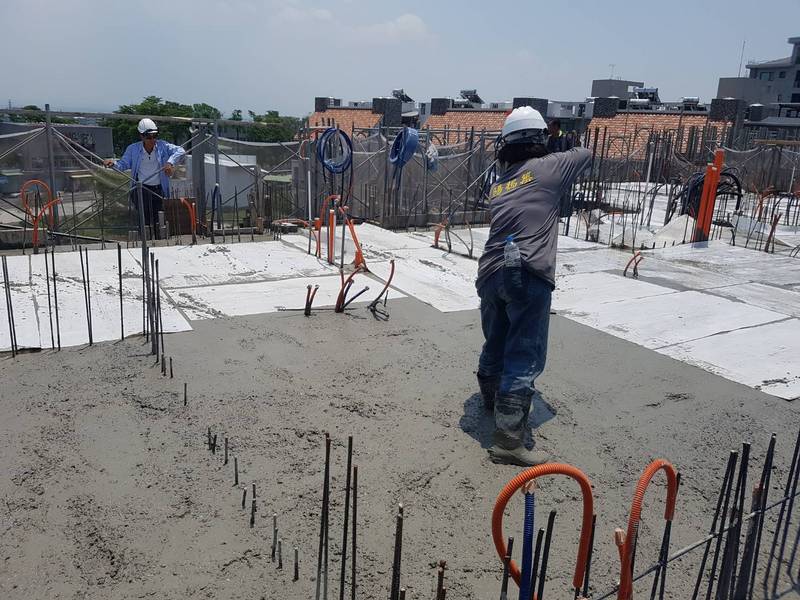 G區五樓公寓-五樓底版搗築混凝土,振動棒使用,減少蜂巢
