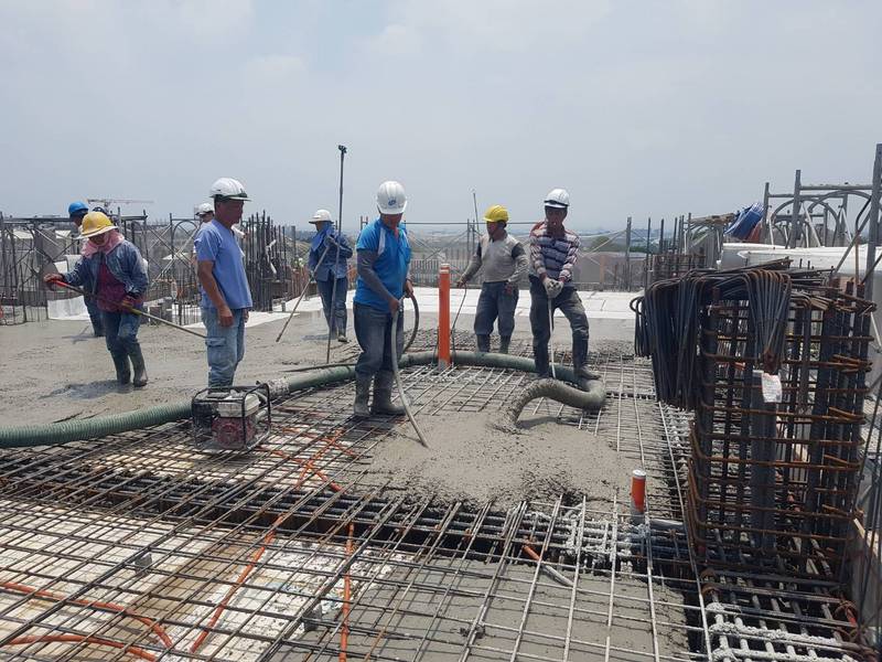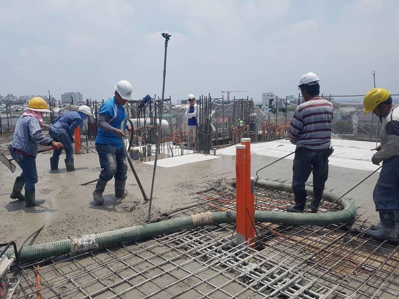 G區五樓公寓-五樓頂版搗築混凝土,振動棒使用,減少蜂巢