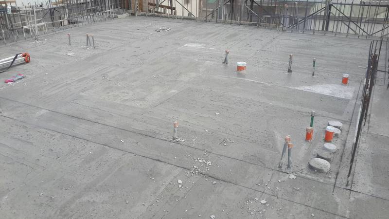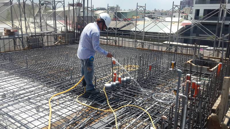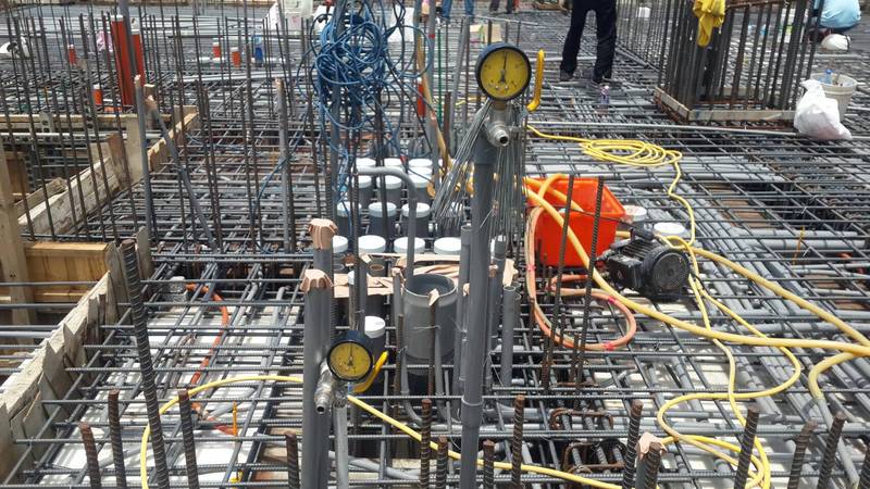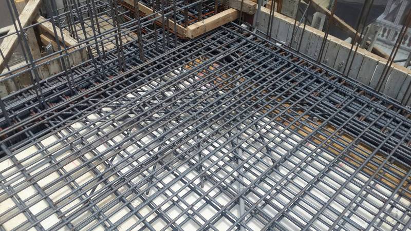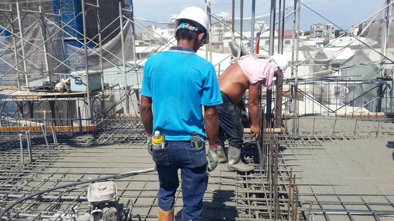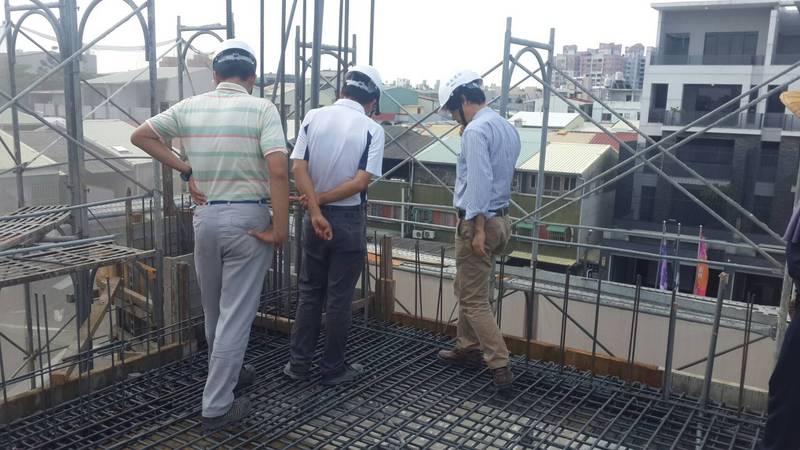 澆置前,建築師與現場工地經理做鋼筋綁紮確認