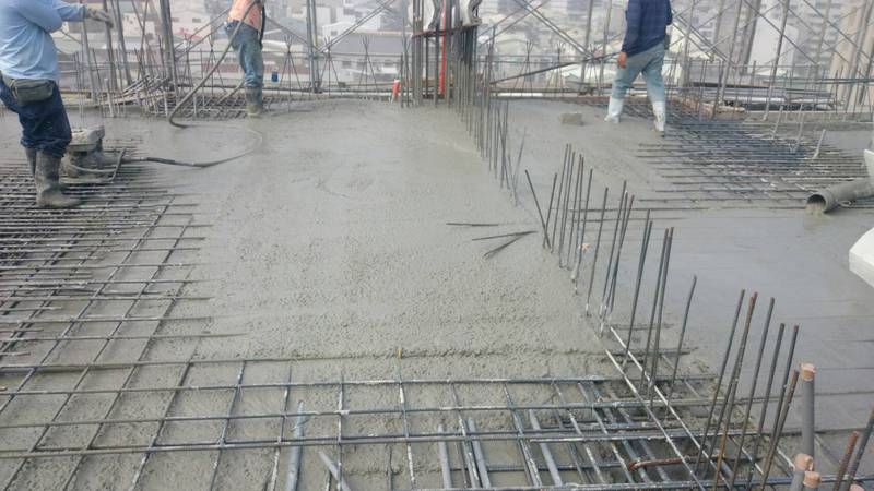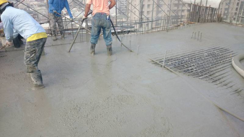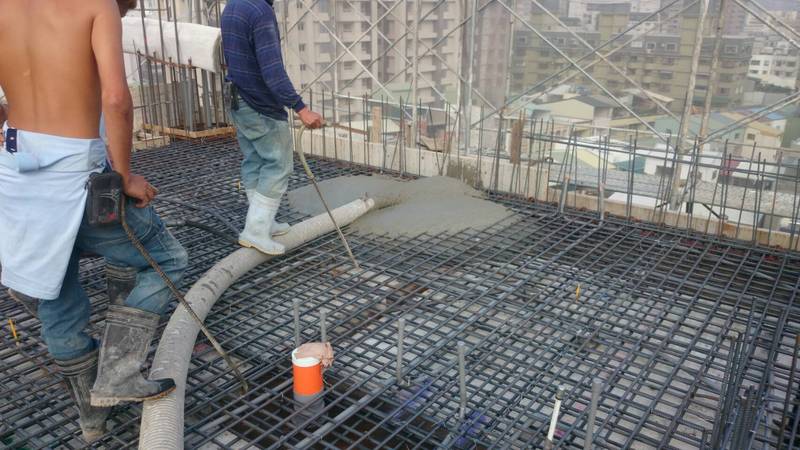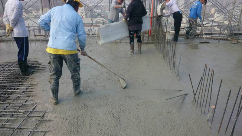 樓版面整平,蓋白色PC版,防止水分蒸發減少龜裂