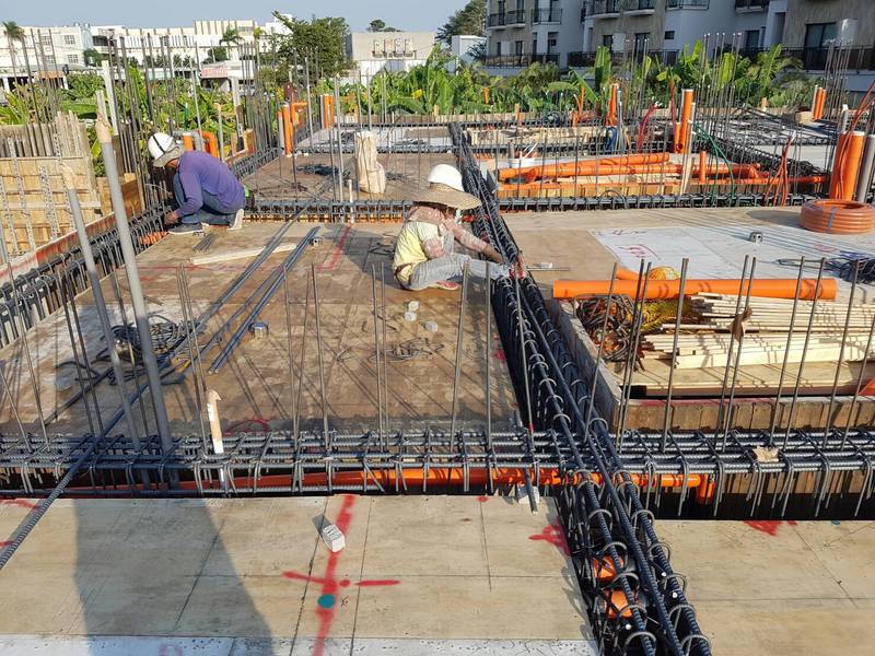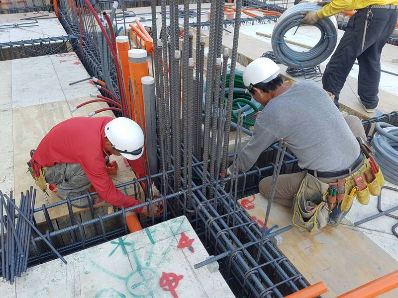 2F底版灌漿,搗築混凝土.振動棒使用減少蜂巢